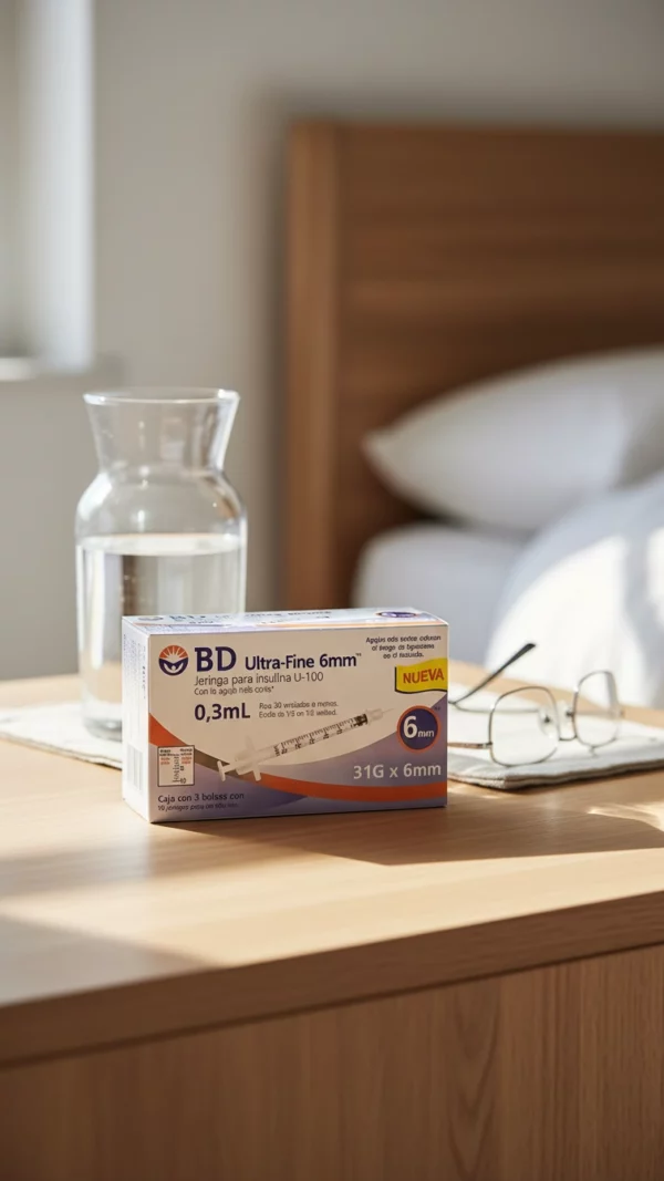 Estas jeringas para insulina BD Ultra Fine 6 mm U‑100, 0,3 ml son ideales para personas con diabetes que se inyectan insulina subcutánea a diario y buscan una punción lo más cómoda posible. Su aguja muy fina de 31G y la longitud corta de 6 mm ayudan a reducir el dolor y facilitan la aplicación en personas delgadas, niños y adultos sensibles a las inyecciones.